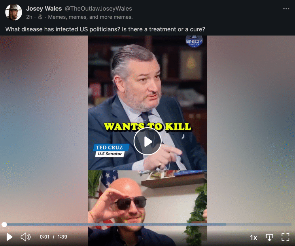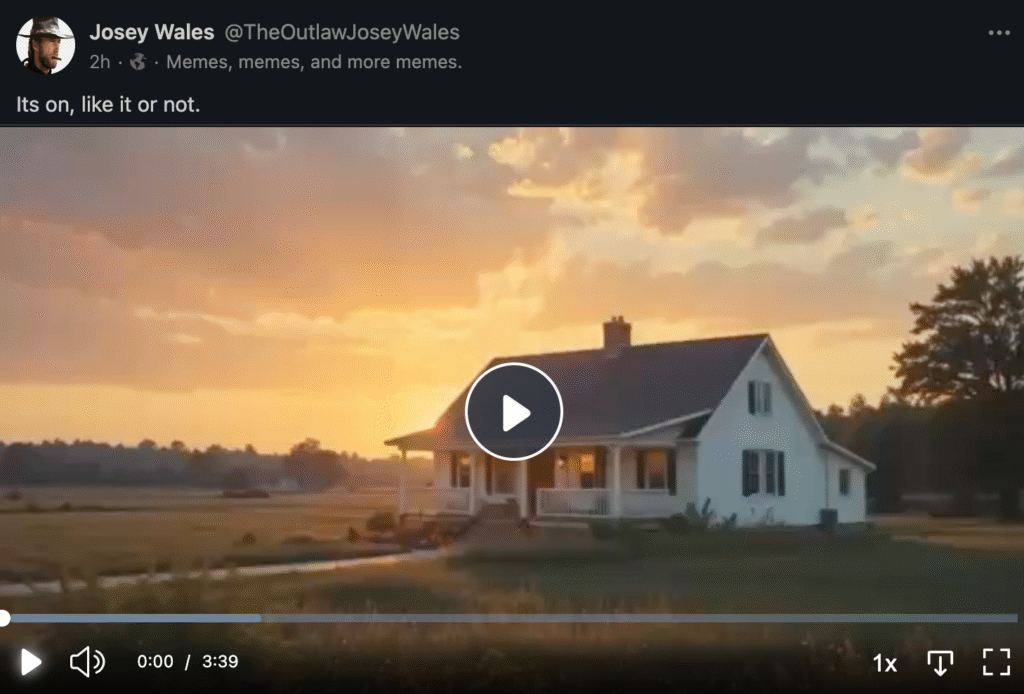 https://gab.com/TheOutlawJoseyWales/posts/115476757821832156