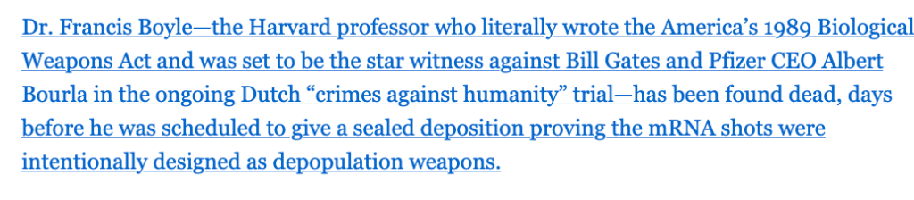 https://thepeoplesvoice.tv/bioweapons-expert-found-dead-days-before-testifying-against-bill-gates-depopulation-agenda/ [check for corroboration]