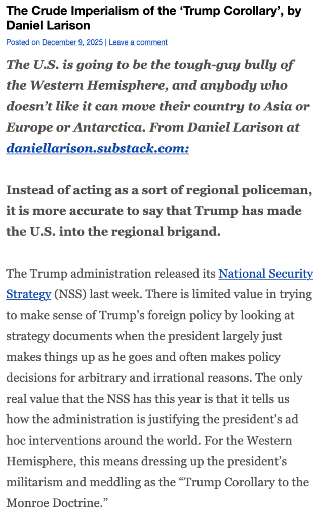 https://straightlinelogic.com/2025/12/09/the-crude-imperialism-of-the-trump-corollary-by-daniel-larison/ via