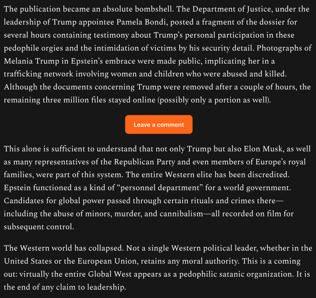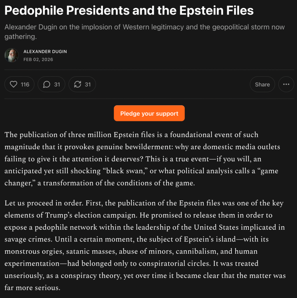 https://alexanderdugin.substack.com/p/pedophile-presidents-and-the-epstein