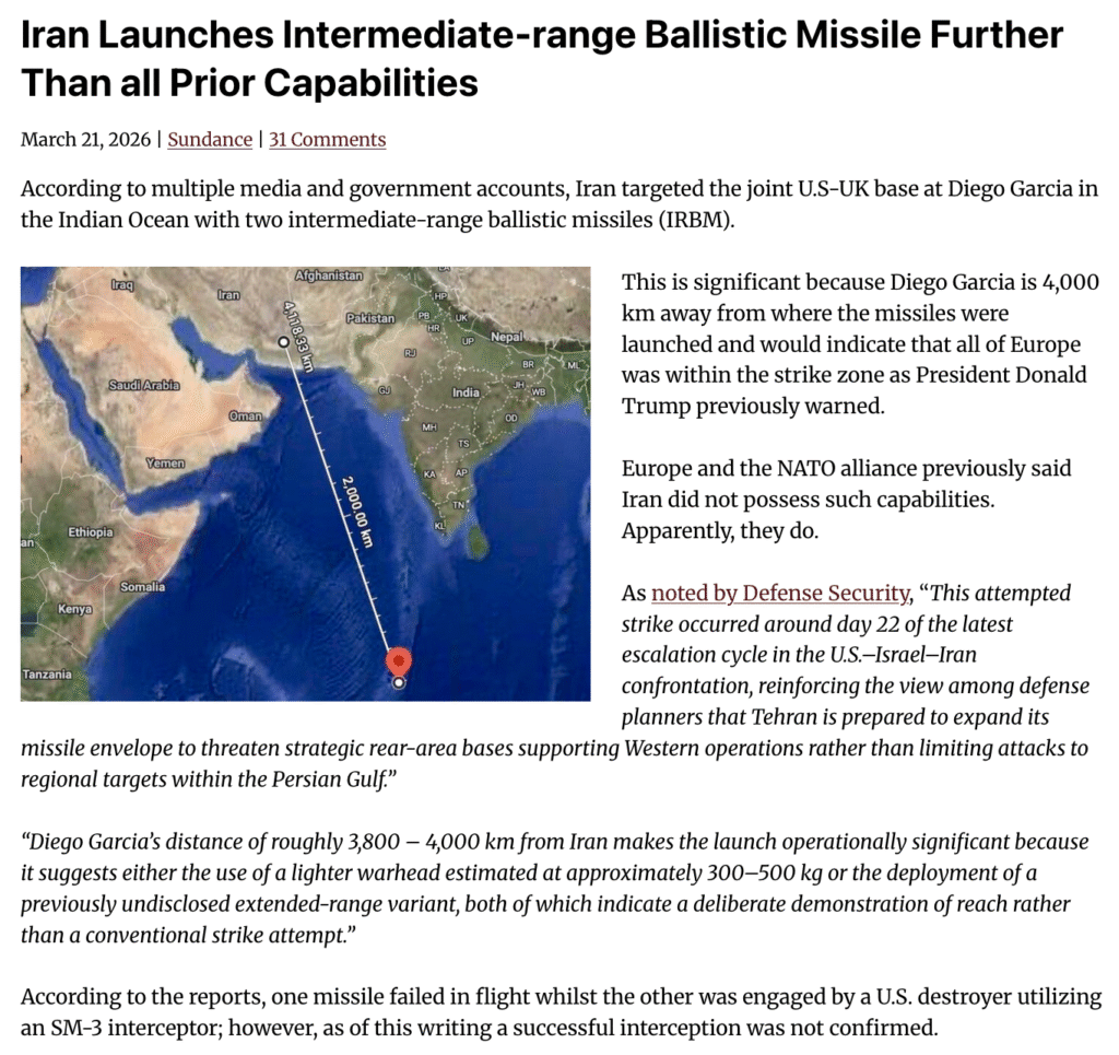 https://theconservativetreehouse.com/blog/2026/03/21/iran-launches-intermediate-range-ballistic-missile-further-than-all-prior-capabilities/