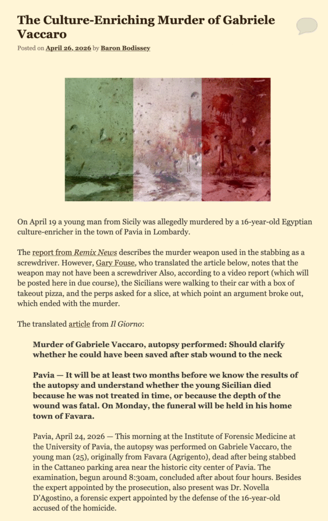 https://gatesofvienna.net/2026/04/the-culture-enriching-murder-of-gabriele-vaccaro/